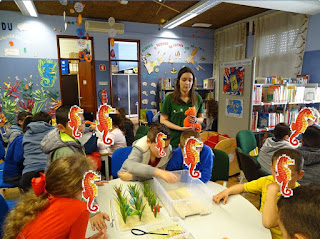No final da sessão respondemos a perguntas e fizemos "slogans" sobre os Cavalos Marinhos.