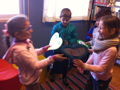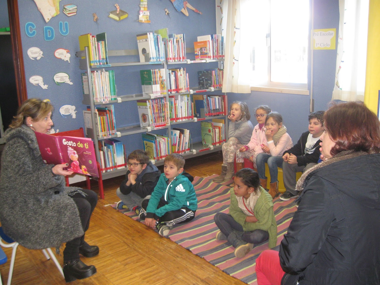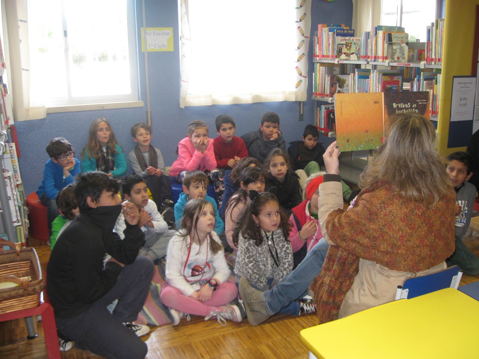 A turma da Educadora Olinda veio à hora do Conto ouvir a história,