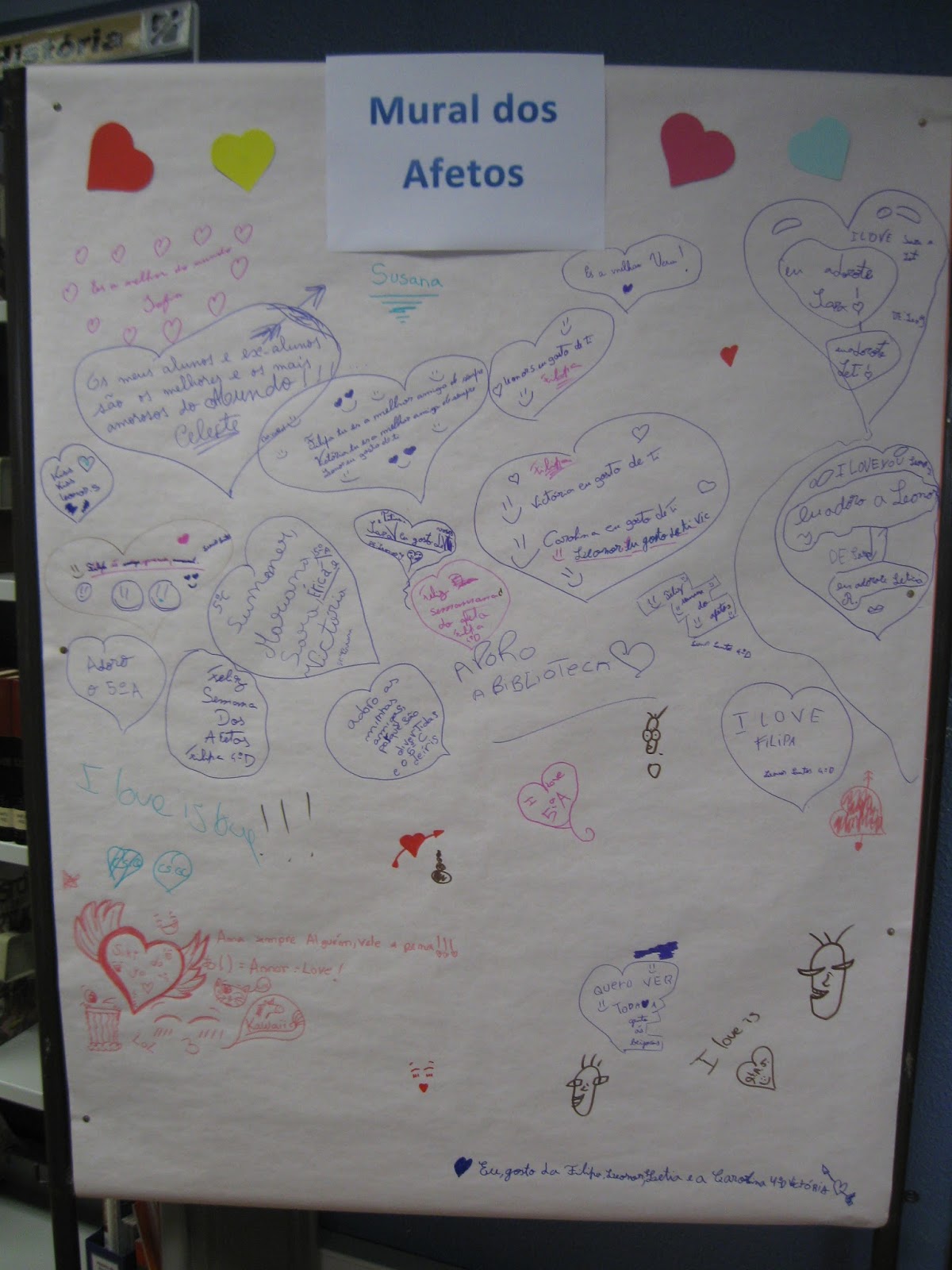 A semana dos afetos, trouxe muita vida à nossa BE, cartazes e estendal com frases em Inglês pela Prof.ª Cláudia Nobre, cartas com formato de coração para cortar, dobrar e escrever a frase de amizade... ou até de amor!