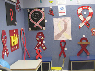 Encontra-se na BE uma exposição de trabalhos, elaborados pelos alunos, sobre a SIDA.